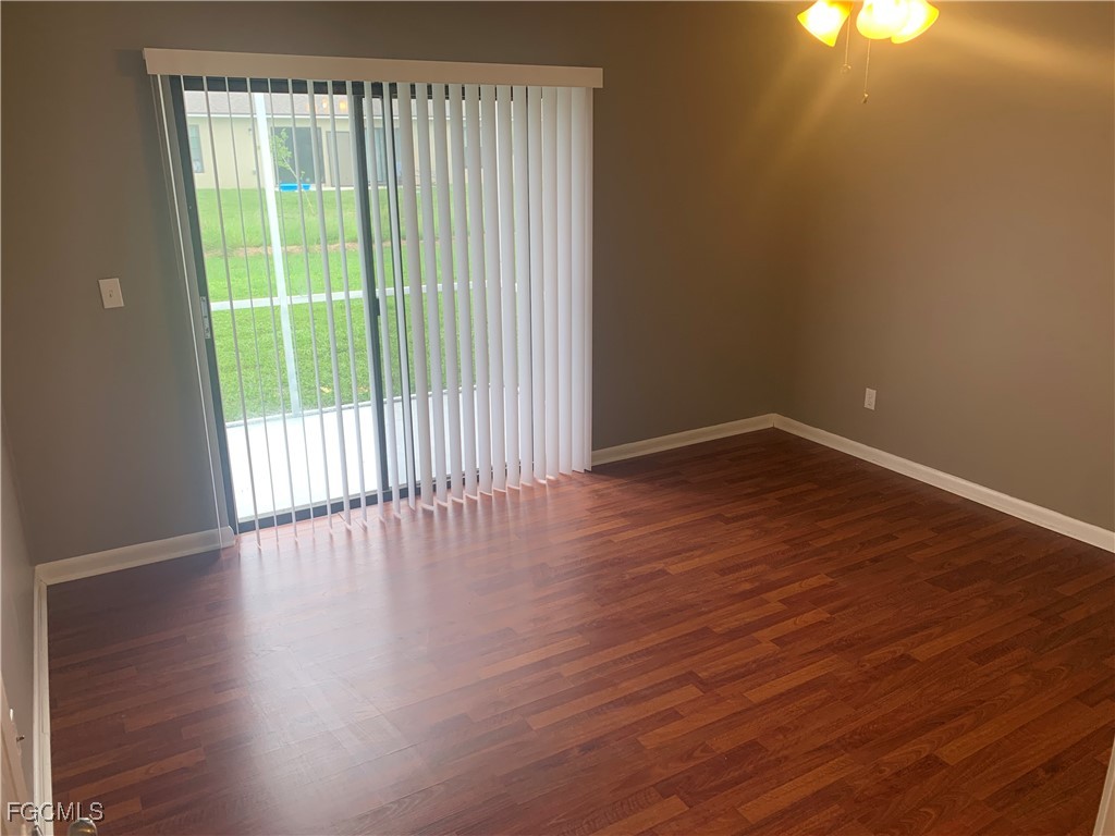 Cute 3 bedroom 1.5 bathroom 1 car garage with laundry hookup located in quiet neighborhood of Southwest Cape Coral. Enter into your living room with gorgeous wood laminate flooring and large windows! Master bedroom offers a half bath and direct access to the screened lanai!