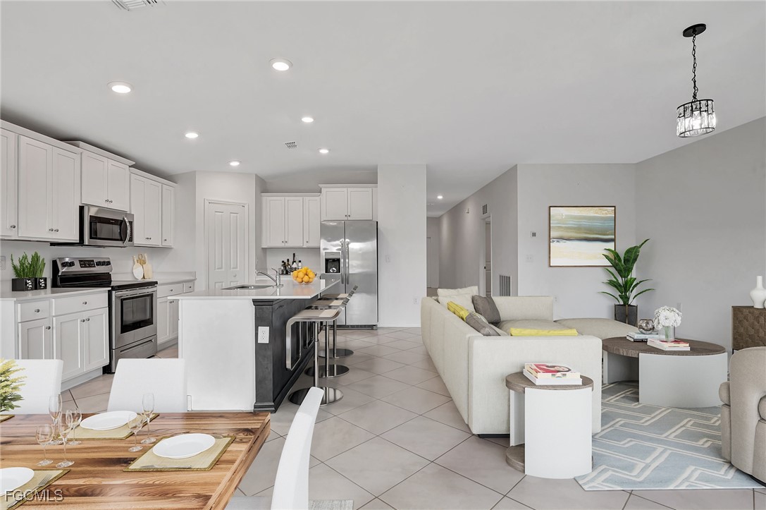 Welcome to this well-maintained single-story home located on a quiet street in Lehigh Acres, offering space, functionality, and a clean, move-in-ready interior. The open-concept floor plan creates a seamless flow between the kitchen, living, and dining areas, ideal for everyday living and entertaining. Neutral tile flooring runs throughout the main living spaces, enhancing durability and ease of maintenance.