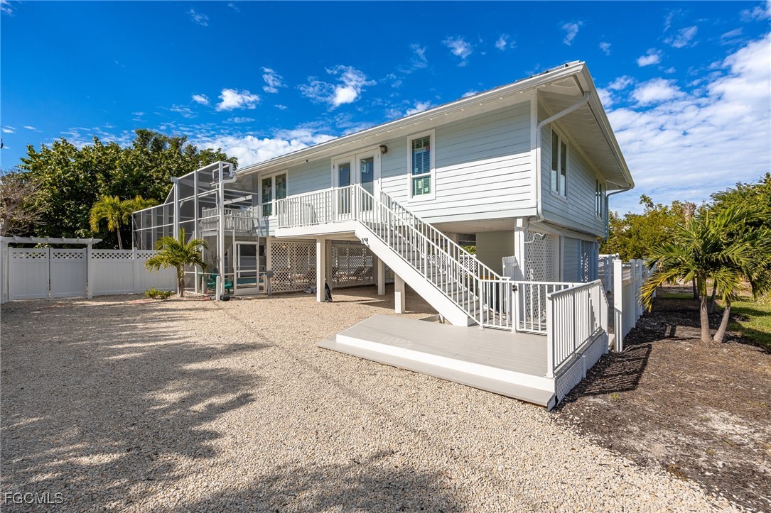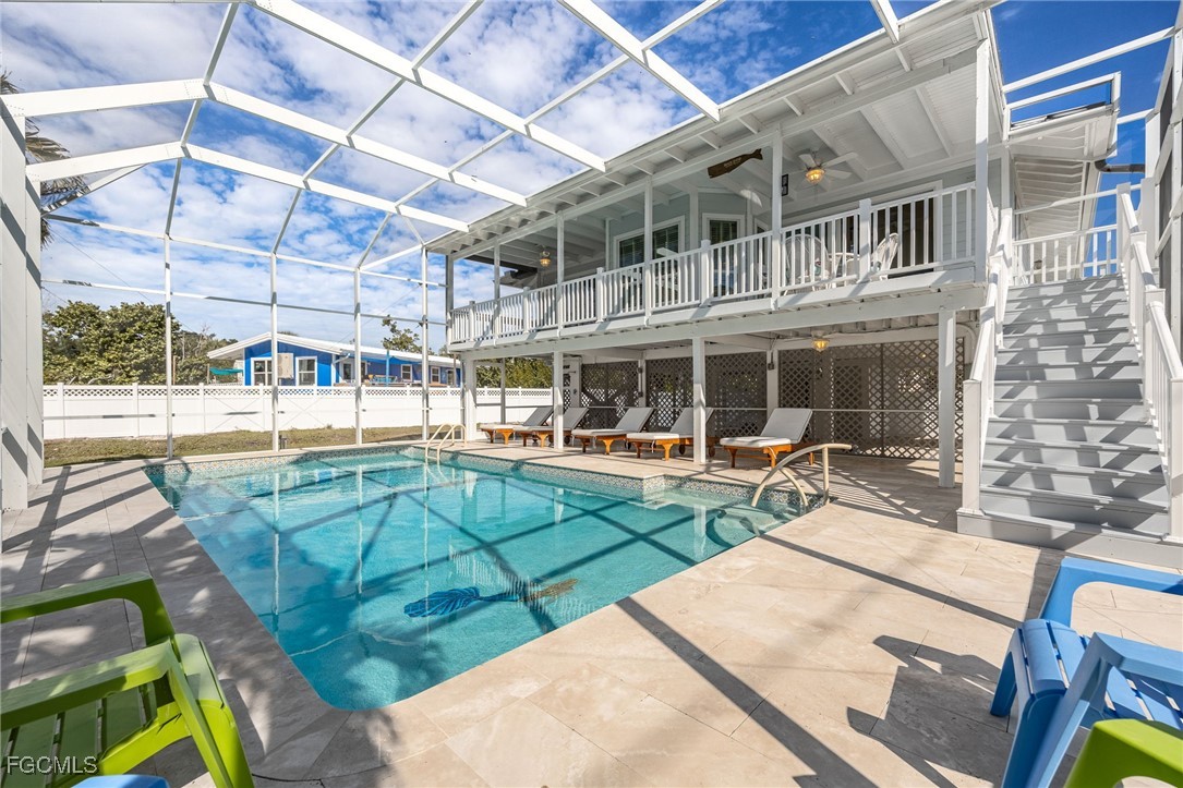 Completely remodeled following Hurricane Ian, this stunning stilt home has been thoughtfully upgraded throughout, including new flooring, bathrooms, air conditioning, windows, doors, siding, fencing, pool, pool heater, pool deck, patio, pool cage, and stairs, offering guests a fresh, modern, and worry-free stay.