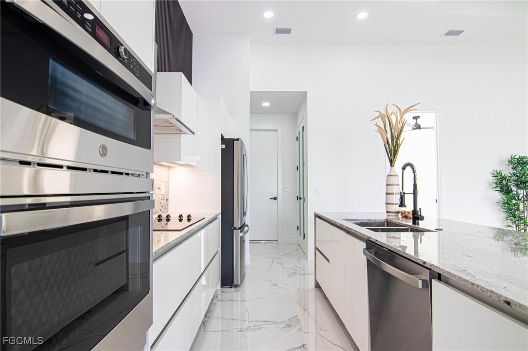 Discover an EXCEPTIONAL opportunity to RENT this FRESHWATER FRONT SWFL PARADISE - an all-NEW LUXURY CONTEMPORARY HOME NEW BUILT with the finest finishes and READY FOR IMMEDIATE MOVE-IN! This spacious 1,898 sq ft floor plan offers 4 BEDROOMS and 3 BATHROOMS, all adorned with elegant SPANISH PORCELAIN TILE throughout. Enjoy the benefits of a desirable NORTHEAST rear exposure, providing pleasant morning sun and cool afternoon shade - perfect for outdoor comfort, relaxing on the patio, or future pool enjoyment. This orientation minimizes interior heat gain, enhancing ENERGY EFFICIENCY and year-round comfort. It’s an ideal setting for morning coffee or outdoor gatherings without harsh afternoon glare! Situated on an OVERSIZED 0.297-acre LOT with a 148-FT SEAWALL along the FRESHWATER CANAL - HELLO FISHING! Water lovers can enjoy direct access to Cape Coral's interconnected FRESHWATER CANAL SYSTEM - perfect for kayaking, jet skiing, or boating adventures! Step through the FRONT COLUMNED PORCH and IMPACT-RESISTANT DOUBLE DOORS into a bright FOYER that opens to a spacious LIVING ROOM featuring a 12-ft COVE CEILING and BREATHTAKING LOOOOOONG VIEW OF THE FRESHWATER CANAL! The GOURMET KITCHEN showcases STAINLESS STEEL APPLIANCES including an electric cooktop, wall-mounted microwave & oven, dishwasher, refrigerator/freezer, and a large pantry. ITALIAN CUSTOM CABINETRY, a WATERFALL KITCHEN ISLAND, GRANITE COUNTERTOPS, FULL BACKSPLASH, and a LARGE STAINLESS-STEEL SINK with PRE-RINSE SPRING SPOUT FAUCET elevate the culinary experience. Enjoy FORMAL DINING with tranquil canal views or host casual meals in the breakfast bar or kitchen sitting area. The PRIVATE MASTER SUITE features spacious HIS & HER WALK-IN CLOSETS and a LUXURIOUS MASTER BATH with CUSTOM FLOATING VANITY, QUARTZ COUNTERTOPS, DUAL SINKS, CUSTOM MIRROR, and a SPA-INSPIRED SHOWER with rain head and handheld fixtures. The SPLIT FLOOR PLAN ensures privacy with a SECOND IN-SUITE GUEST BEDROOM and POOL BATH, a 3rd BEDROOM with adjacent FULL BATH, and a versatile 4th BEDROOM that can serve as a DEN or OFFICE, conveniently located off the living room. Step out to the COVERED LANAI, where an OUTDOOR AREA features GRANITE COUNTERTOP, COMMERCIAL SINK, and BUILT-IN STORAGE - perfect for entertaining or relaxing with family and friends. The LAUNDRY ROOM is equipped with a LAUNDRY TUB, STACKABLE SAMSUNG WASHER & DRYER, and custom cabinetry. The 2-CAR GARAGE offers EPOXY FLOORING and a SIDE DOOR for easy access. Located just blocks from Burnt Store Rd N., this home offers quick access to Pine Island Rd, Veterans Pkwy, US-41, I-75, and a short drive to Punta Gorda, Venice, Sarasota, Fort Myers, Naples, and top SWFL BEACHES and INTERNATIONAL AIRPORTS.