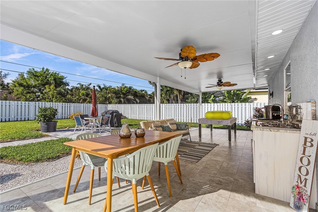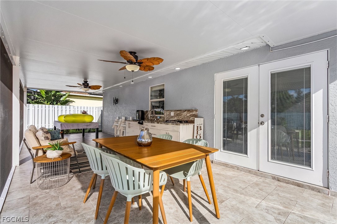 Fully SCREENED-IN 600 sq ft FULLY TILED lanai with full OUTDOOR KITCHEN keeps the party going outside!