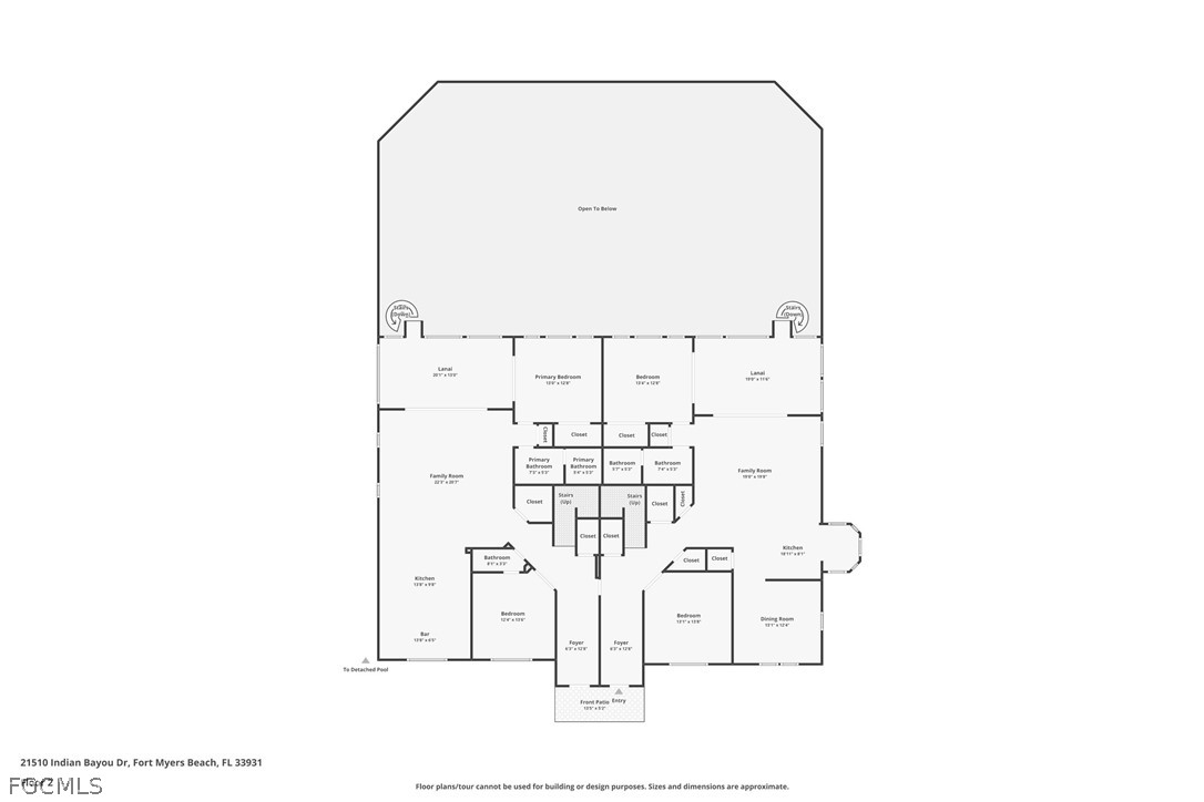 Welcome to this ultimate waterfront duplex paradise on Fort Myers Beach! Nestled at the end of a quiet cul-de-sac along stunning Estero Bay, this extraordinary property delivers an impressive 4,400 square feet of thoughtfully designed living space across two mirror image residences. Each side of this remarkable duplex features 3 spacious bedrooms plus a versatile den or bonus room, accompanied by 4 bathrooms, perfect for accommodating family, friends, or lucrative rental guests. This property sits on a weekly rental street, making it a dream investment opportunity. Enter and discover stunning custom upgrades throughout, including quartz countertops, oversized kitchen islands with cooktop and custom hood, separate wet bars, and tons of built-in storage. Vaulted ceilings and elegant tile flooring create an airy, coastal atmosphere, while a durable metal roof provides lasting peace of mind. The outdoor living is where this property truly shines. A resort-style pool and spa anchors the backyard oasis, surrounded by generous covered seating areas and extra outdoor living space. Two oversized lanais frame breathtaking bay views, and an upper-story balcony off the bedrooms offers a private retreat above it all. Boating enthusiasts will love the bayfront dock, ready to accommodate a large vessel. Practical perks include an oversized 4 stall garage with ample room for extra toys and storage. Conveniently located at the south end of Fort Myers Beach close to shopping, restaurants, sugar white sand beach, Lovers Key State Park and more. Schedule your showing today!