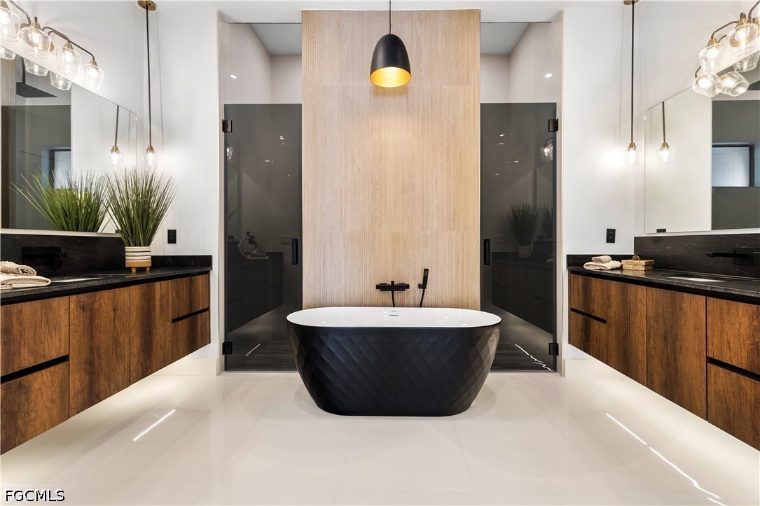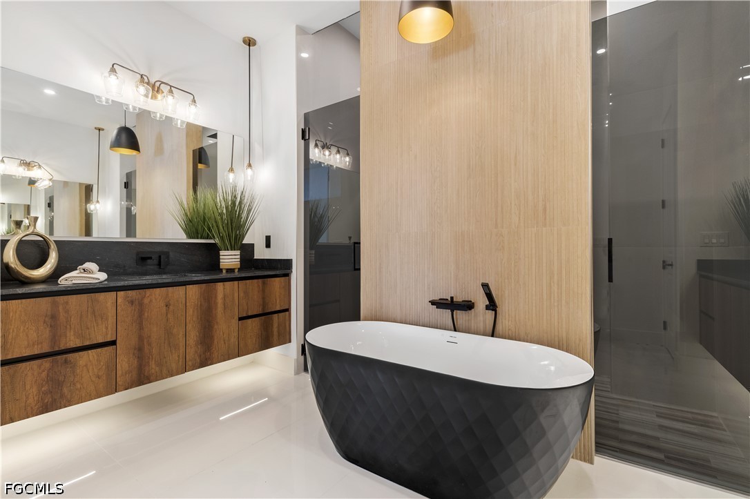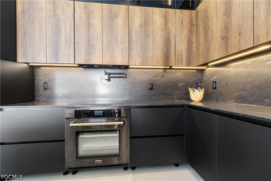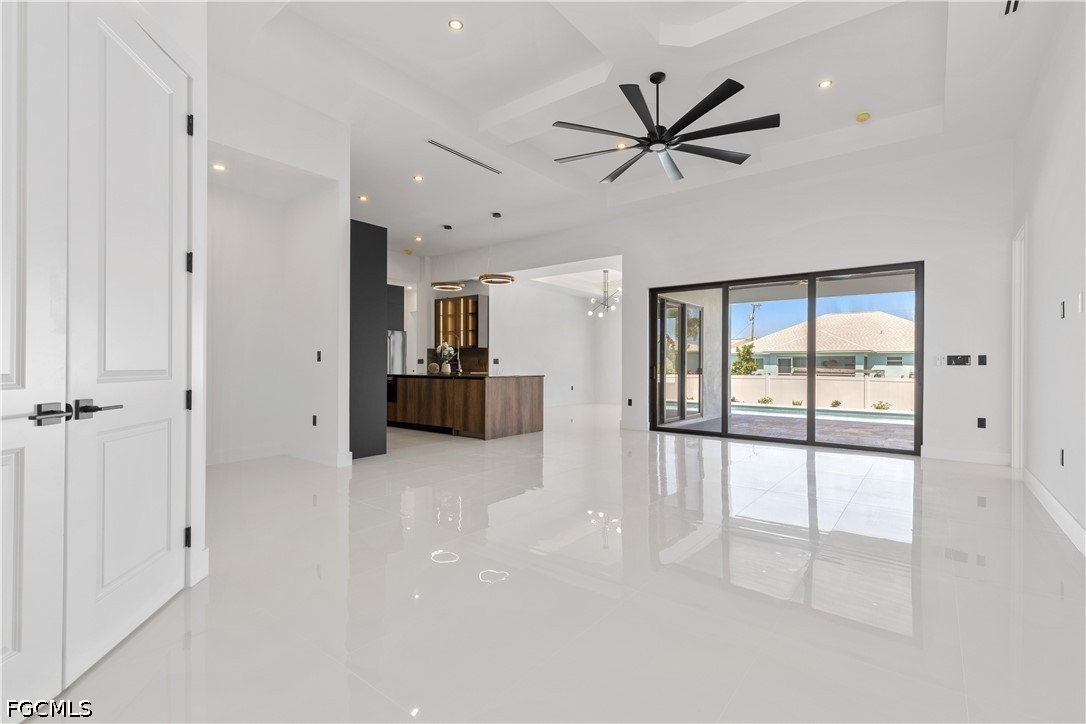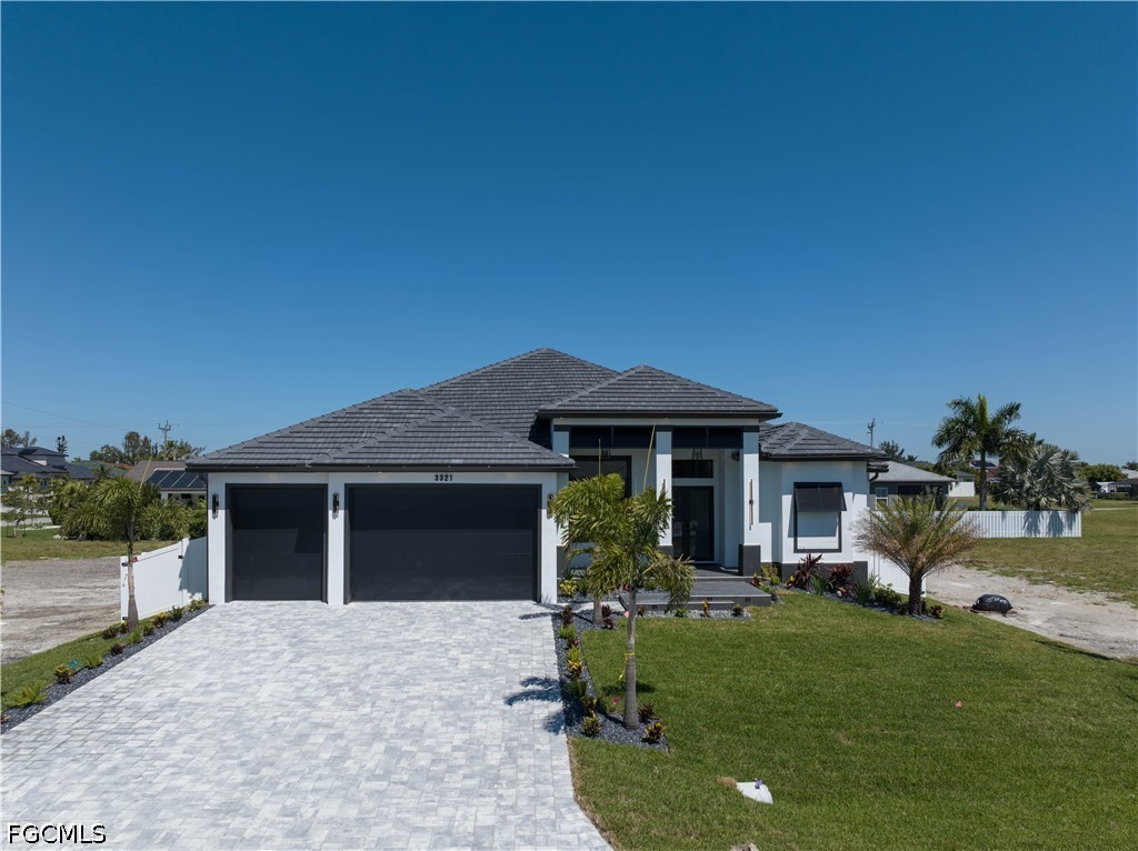 EXQUISITE CONTEMPORARY MASTERPIECE awaiting YOUR CLAIM as THE ULTIMATE RESIDENCE in paradisiacal realm of SWFL! Behold this STUNNING RECENTLY BUILT LUXURY PROPERTY, boasting captivating NORTHERN WEST REAR EXPOSURE, promising BREATHTAKING SUNSET VISTAS. Spanning across generous 2,420 sq ft, BRIGHT & EXPANSIVE abode features SPANISH PORCELAIN TILE flooring thru 3 BEDS plus DEN & 3.5 BATHS. Every detail EXUDES OPULENCE, from DESIGNER LAMPS & LIGHTS to MODERN FANS adorning ceilings. Step through DOUBLE FRONT DOORS into GRAND FOYER illuminated by LED TRACK LIGHTS, setting stage for REMARKABLE AMBIANCE that awaits. The LIVING SPACES ENCHANT w/ SOARING 14-ft COVE CEILINGS, seamlessly blending MODERN AESTHETICS w/ HOMELY WARMTH. Smooth walls & elegant wood baseboards further ELEVATE INTERIOR ALLURE. HEART OF THE HOME lies MAGNIFICENT GOURMET KITCHEN, designed to be FOCAL POINT of family gatherings & intimate conversations. Revel in TOP-OF-THE-LINE custom cabinetry, quartz countertops, spacious farmhouse sink & striking bronze & black faucet w/ pull-down spring spout. The KITCHEN also boasts full backsplash & is equipped with TOP-TIER ZLINE AUTOGRAPH appliances in BLACK STAINLESS w/ BRONZE ACCENT, including wall oven, induction cooktop, microwave, integrated dishwasher & refrigerator. LED track lights illuminate under & top cabinets, enhancing both FUNCTIONALITY & STYLE. A dedicated ROASTERY RENDEZVOUZ provides cozy spot for MORNING BREWS or EVENING COCKTAILS, complete w/ additional storage & wine cooler nestled beneath the cabinets. ENTERTAIN IN STYLE w/ the choice of MEMORABLE FORMAL DINING EXPERIENCE in sizable dining room, featuring stackable doors leading to LANAI, or opt for CASUAL DINING at the KITCHEN ISLAND SEATING AREA. The spacious master bedroom offers LUXURY & COMFORT, complete w/ HIS & HERS WALK-IN CLOSETS featuring custom fittings. Indulge in the STUNNING MASTER BATHROOM, featuring WALKTHROUGH TILE & RAINFALL SHOWER, LUXURIOUS TUB, custom vanities & mirrors, wall-mounted faucets, quartz countertops & electric toilet w/ BIDET FUNTIONS. The SPLIT FLOORPLAN ensures PRIVACY, w/ LARGE SECOND MASTER BEDROOM boasting custom built-in cabinets, in addition to hall bath & linen closet for AMPLE GUEST ACCOMODATION. Outside, EXPANSIVE LANAI beckons w/ WIDE & DEEP POOL, complemented by OUTDOOR KITCHEN featuring CHARCOAL BBQ GRILL, mini refrigerator & deep sink w/ BLACK & BRONZE spring spout faucet. ADDITIONAL HIGHLIGHTS include laundry room w/ laundry tub & built-in cabinets housing SAMSUNG MULTISTEAM MOISTURE SENSOR SMARTTHINGS washer & dryer, 3-car garage & fenced property. Nestled in RESIDENTIAL NEIGHBORHOOD, this PRIME LOCATION offers easy access to ESSENTIAL AMENITIES & RECREATIONAL ACTIVITIES, w/ GULF ACCESS just 3 min away, opening doors to ENDLESS SAILING ADVENTURES to destinations like Cayo Costa & Sanibel. DISCOVER UNPARALLELED LUXURY LIVING IN CAPE CORAL, where CONVENIENCE meets COASTAL CHARM amidst backdrop of NATURAL BEAUTY & URBAN ALLURE!