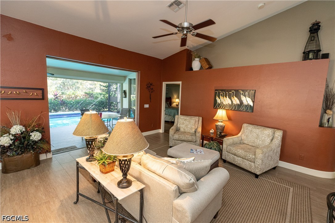 Beautiful, completely updated, fully furnished home in sunny Fort Myers, Florida! Welcome to your dream home in the prestigious Olde Hickory Golf & Country Club! As a bundled golf community, the 18 Hole Golf Club Membership is included!! This stunning single family home boasts 2 bedrooms plus Den, 2 bathrooms, and a 2 car garage, perfect for a luxurious retreat or second home. HOME HIGHLIGHTS!!....1 - EVERY ROOM HAS UPDATED FEATURES FROM FLOOR TO CEILING, 2 - MAGNIFICENT VIEW OF GOLF COURSE AND FOLIAGE WITH A LARGE PICTURE WINDOW SIZE SCREENED LANAI, 3 - LARGE FRESHWATER IN-GROUND POOL, 4 - HOME OFFICE, 5 - FINISHED GARAGE WITH MANY STORAGE FEATURES, 6 - NEW ROOF IN 2018 AND A NEW HVAC SYSTEM IN 2023, 7 - THE BUNDLE GOLF MEMBERSHIP ALLOWS YOU TO ENJOY ALL DAY. The kitchen features granite counters, stainless steel appliances, and tile flooring, making it a chef's paradise. The hurricane shutters provide peace of mind during storm season. The Roman jetted tub in the master bathroom is perfect for unwinding after a long day, and the wood-like flooring adds a touch of elegance throughout the home. Olde Hickory Golf & Country Club is next door to Fiddlesticks Country Club and close to shopping, dining, SWFL airport and a short drive to the beach! COMMUNITY HIGHLIGHTS!!....GOLF COMMUNITY IS OWNER OWNED AND AVAILABLE TO ALL OWNERS, 18 HOLE GOLF COURSE AND PRACTICE FACILITIES, CASUAL AND FINE DINING, VERY ACTIVE WOMEN'S GOLF ACTIVITIES, 4 ACTIVE PICKLEBALL COURTS AND ENTHUSIASTS, SECURE GATED COMMUNITY WITH FULL TIME 24 HOUR MANNED SECURITY AND A WELLNESS FACILITY PACKAGE INCLUDING A FITNESS CENTER, PICKLEBALL COURTS, TENNIS COURTS, SWIMMING POOL AND HOT TUB. Don't miss your chance to own this beautiful property in a gated golf course community - schedule a showing today!