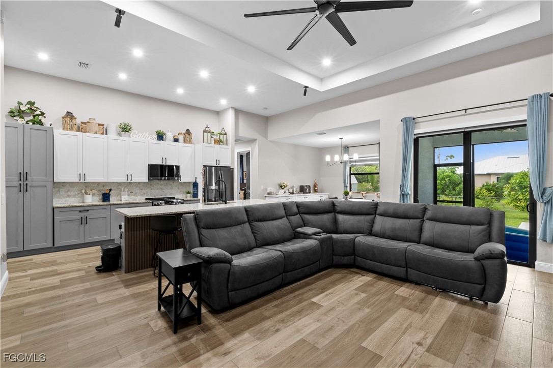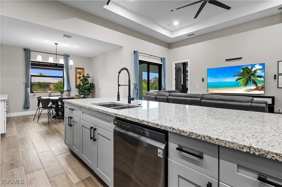 Beautifully upgraded home featuring a fully remodeled floor with 5.5” baseboards, crown molding, and fresh interior paint. The modern kitchen offers a pantry, custom backsplash, island accents, dining room cabinets, and upgraded lighting. The master suite boasts a remodeled bathroom with glass shower door, upgraded fixtures, and custom closets, while the secondary bedrooms also include custom closets. Enjoy added convenience with laundry room cabinets, sink, backsplash, washer/dryer, and updated light fixtures in all baths. Smart home features include a Casera lighting system, Honeywell thermostat, alarm with cameras, and window shades. Energy-efficient upgrades include solar panels (loan transferable), tankless water heater with recirculating hot water, and water conditioner. Outdoor living shines with an enclosed lanai with lights, fans, and new flooring, a front entry enclosure, backyard shed, patio concrete slab, exterior lighting, and a painted garage floor. Truly move-in ready with every detail thoughtfully upgraded.