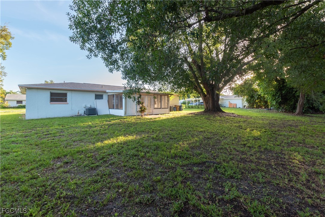 This charming 2-bedroom, 2-bathroom ranch-style home in Fort Myers Shores offers the perfect blend of comfort and location. Set on a generous lot, with no HOA restrictions, the key features include new roof (2025), new A/C (2024) and a brand new garage door. This home provides 1,220 sq ft of living space with a functional split-bedroom layout, tile and laminate floors throughout, two full bathrooms and well-sized bedrooms, laundry hookups in the attached 2-car garage with a Florida room overlooking the spacious backyard. Quick access to I-75, downtown Fort Myers, riverfront parks, shopping, and dining—all just minutes away.
