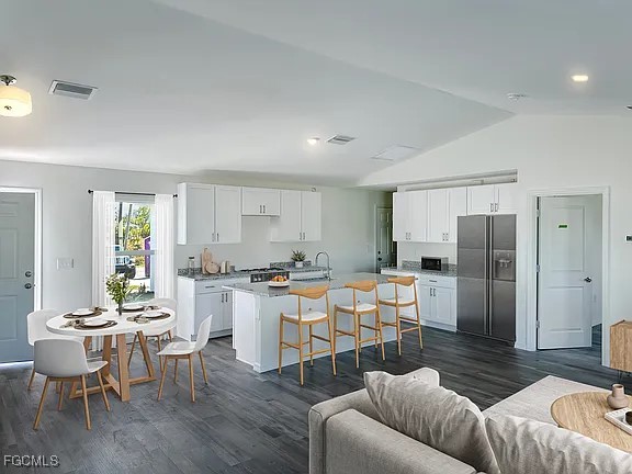Beautiful New Construction spacious 3-bedroom, 2-bath open floor plan greets you with a spacious living and dining area featuring vaulted ceilings and a bright sliding door leading to a covered lanai patio. The gourmet kitchen, stainless-steel appliances, a convenient pantry, and ample cabinet space. Two-car garage ensures plenty of room for vehicles and storage, including charging station hook up for your electric vehicle. Walk in closets, designer fixtures and more. This home includes a ONE WEEK FREE STAYCATION AT 4 BEDROOM/3 BATH HOME W/ POOL IN CAPE CORAL. Ask our your agent for details.