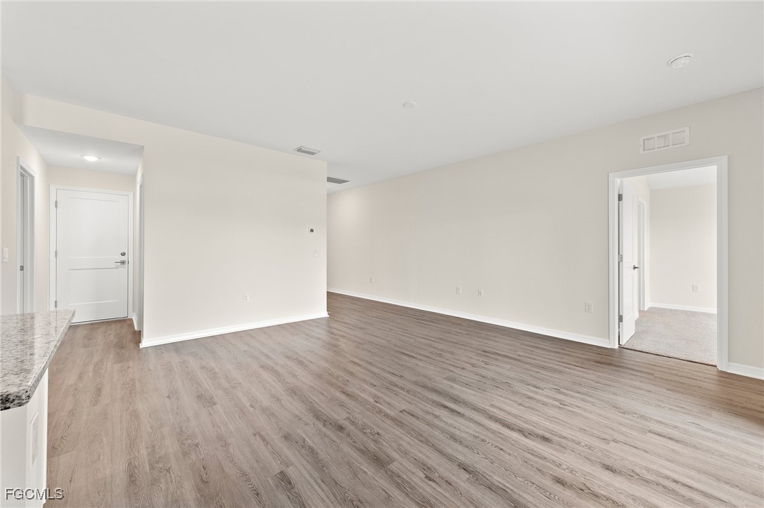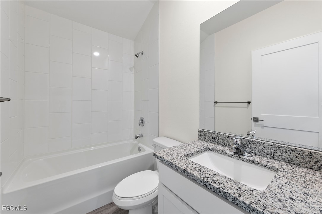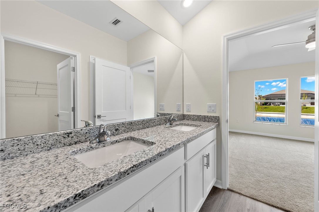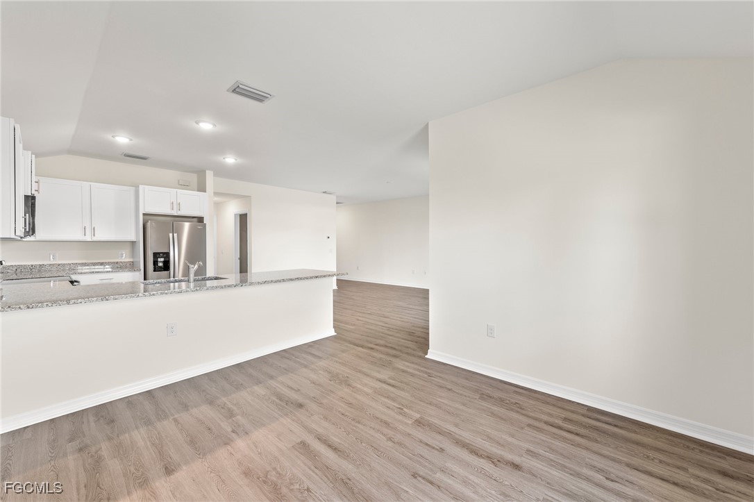 Nestled on a freshwater canal with direct access to Honeymoon Lake, this property is a true gem. Enjoy the convenience of city water, sewer, and irrigation. Step inside to discover an open floor plan featuring a sleek, modern kitchen with stainless steel appliances, a double door refrigerator, granite countertops, and a spacious kitchen bar. The primary suite is a luxurious retreat with breathtaking water views, a lavish ensuite with a walk-in closet, double vanity, granite countertops, and a tiled shower with a glass door. The second bathroom also boasts granite countertops and a tiled shower/tub combo. Additional high-end features include wood plank flooring, vaulted ceilings, ample storage space, modern 3-blade ceiling fans, speckled paint finish on the patio and front entry, and hurricane impact doors and windows. Don't miss out on this amazing opportunity.