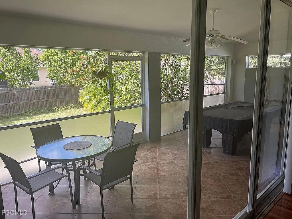Beautifully maintained 3-bedroom, 2-bath home with 1,646 sq. ft. of living space, located on a 0.23-acre lot. This concrete block residence features a split-bedroom floor plan, vaulted ceilings, and French doors leading to the screened patio. The spacious kitchen offers ample cabinetry, pantry, and modern appliances including cooktop, dishwasher, microwave, range, and refrigerator. The primary suite includes a walk-in closet, soaking tub, and separate shower. Additional highlights include tile, laminate, and carpet flooring, inside laundry hookups, and a 2-car attached garage with paved driveway. Exterior features fruit trees, landscaped yard, and room for pool. Enjoy non-gated community living with no HOA restrictions, septic system, and well water. Convenient location with easy access to shopping, dining, and schools.