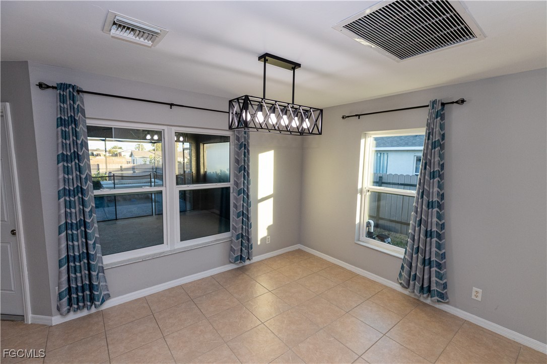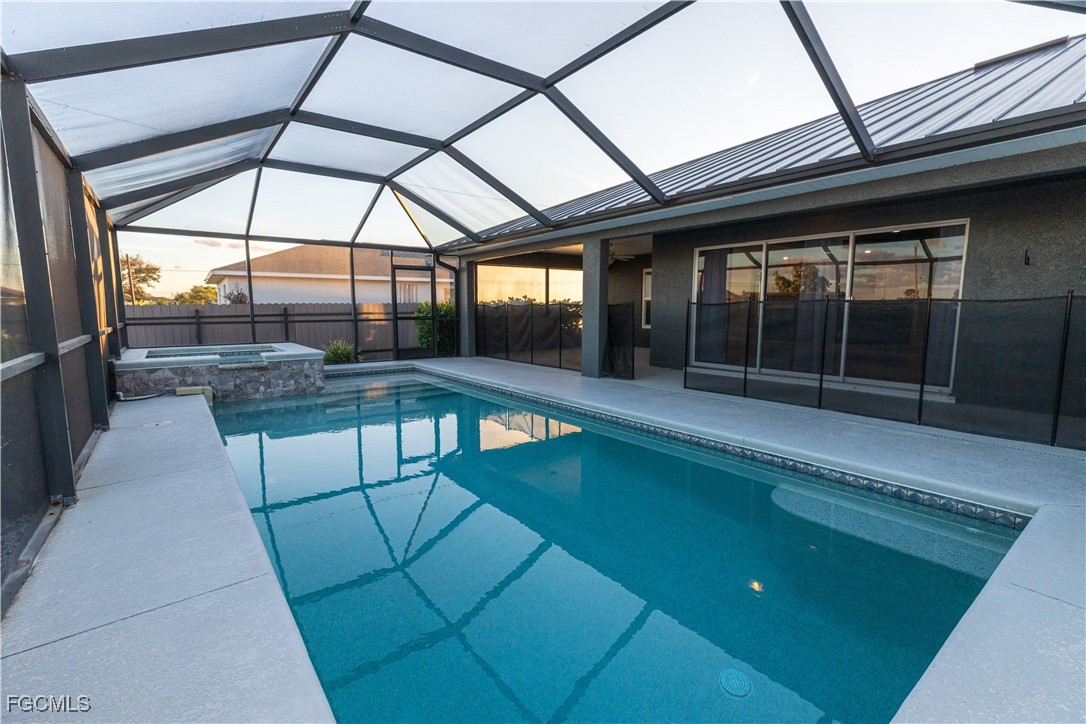 Pool Home in Cape Coral available now! This stunning single family home boasts 4 bedrooms, a 2 car garage, and an in-ground pool with a spa for ultimate relaxation and entertainment. The modern kitchen features Quartzs countertops, stainless steel appliances and sleek tile flooring, perfect for whipping up delicious meals for family and friends. The den and office nook provide additional space for work or leisure. Double sinks and a tub/shower combo in the guest bathroom. The master suite is a true oasis, complete with double sinks, a roman tub, large shower, and an oversized closet for all your storage needs. Tile flooring throughout...no carpet!! Sliders to the patio plus a door from the master bedroom and dining room to easily step outside to the fenced-in yard and enjoy the privacy and security it offers. This home is not only beautiful but also practical, with a brand new HVAC system, impact windows and doors, hurricane shutters, window treatments and a durable metal roof for peace of mind. Don't miss out on the opportunity to make this your forever home in paradise. Schedule a showing today and start living the Florida lifestyle you've always dreamed of!! Pets with approval. $25 monthly pet rental fee. Close to VA Hospitals!