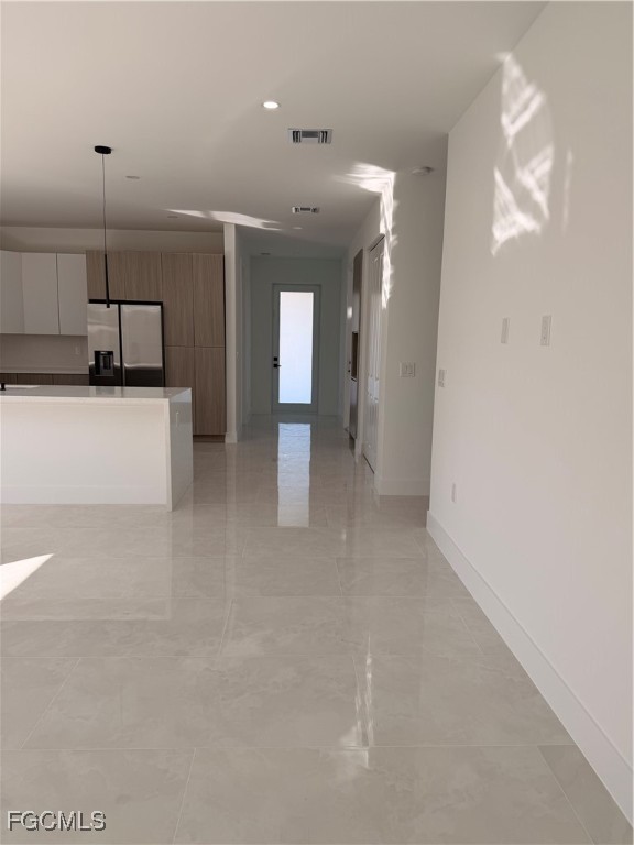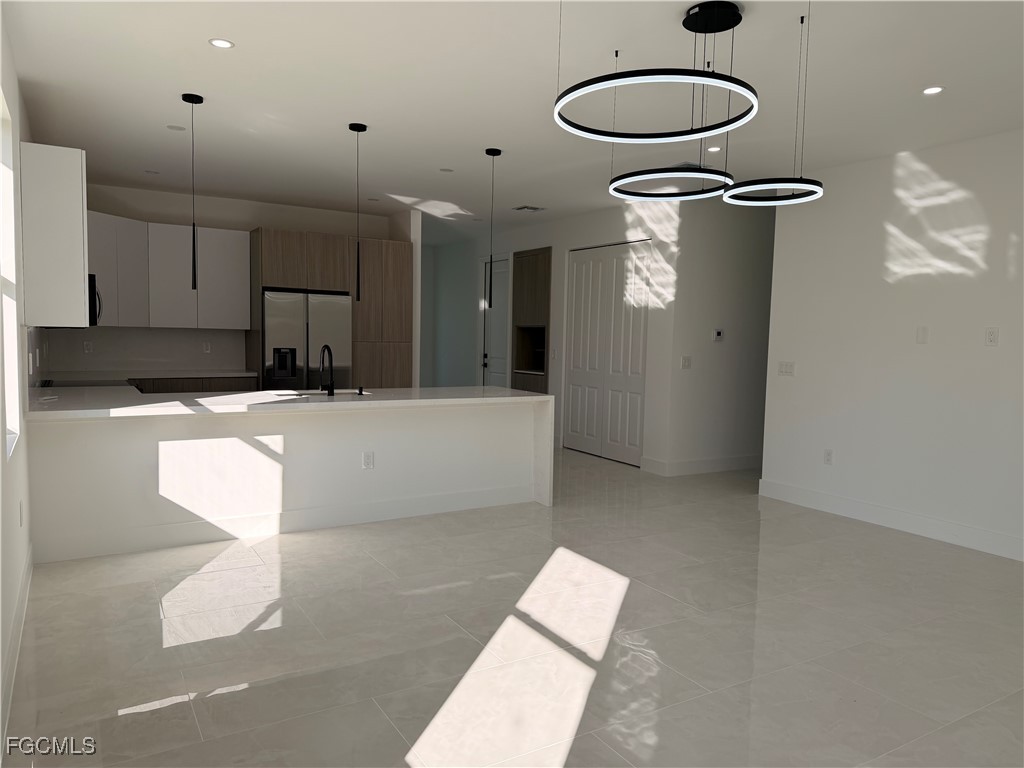 Step into this beautifully designed 4 bedroom, 3 bathroom, 2-car garage home, perfectly blending modern finishes with functional living. Bright open-concept layout with high ceilings and recessed lighting. Stunning porcelain tile floors throughout the entire home. Gourmet kitchen, quartz countertops, island seating, and modern pendant lighting. Stainless steel appliances and modern fixtures for a sophisticated touch. Spacious living and dining area with sliding glass doors leading to the backyard. Elegant bathrooms with floor-to-ceiling tile showers, frameless glass doors, and floating vanities. Laundry closet with hookups conveniently located inside. Long driveway with plenty of parking. Screened-in lanai overlooking the spacious backyard, ideal for relaxing or entertaining. Impact-resistant windows and doors for peace of mind. this Home is Nestled in a quiet and growing neighborhood and offers easy access to shopping, dining, schools, and major roadways. Enjoy modern living in a serene setting while staying close to all conveniences. Perfect for families, first-time buyers, or as an investment property.
