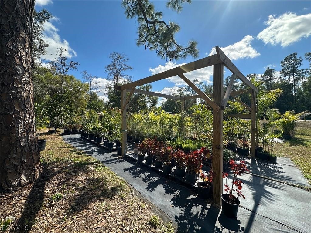 Rare turnkey opportunity: An established Buckingham Gardens and Nursery business on a large residential approximately 1.178834 acre corner lot on Buckingham Road, Westwood Acres. This property blends a licensed nursery operation with convenient residential amenities, all in one parcel. Features a wood-frame-built Tiny Home. Features are a fenced nursery operation with a cattle-gated entrance for owner and visitor parking/loading, plus a large, roofed sales stand and expansive inventory of potted ornamentals, shrubs, palms, flowering trees, ceramics, and related garden decor. NOTE: available are nine fruit filled Mango trees and two with fruit-filled Avocado trees. Included on the grounds is a wood frame equipped “tiny house” (mock kitchen, shower, toilet, bedding) with sheltered outdoor dining, surrounded by wooded screened trellis canopies, seedling beds, and potting starter work area benches. The fenced/gated private back area offers coops and space for seedling starters or hydroponics. A resident cat adds character to the property. This is a turnkey opportunity for buyers seeking an established nursery with flexible expansion opportunities and room to expand into hydroponics, propagation, landscaping services, plant rentals, or classes/workshops, etc. Items that do not convey are "marked."