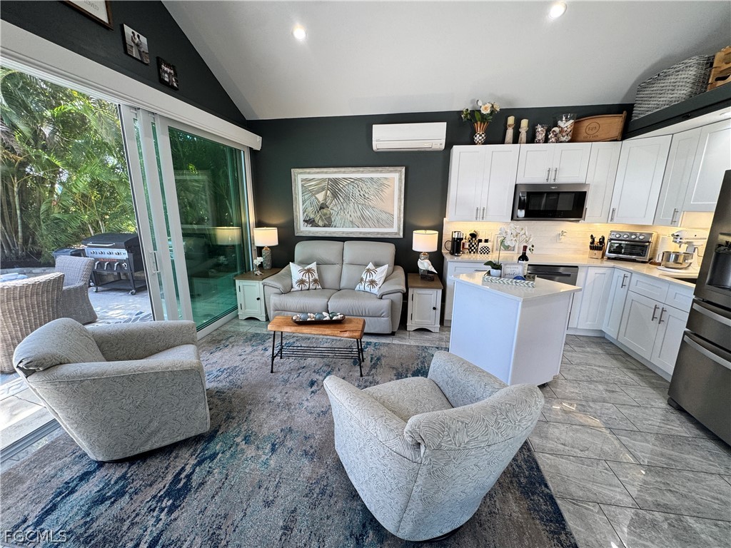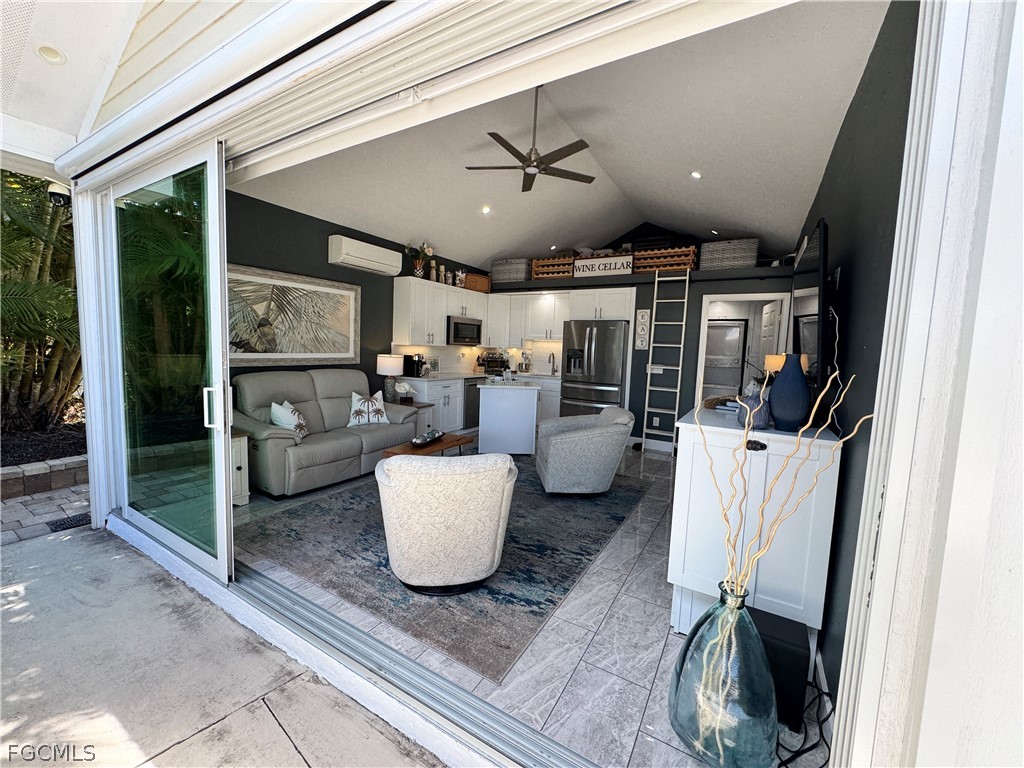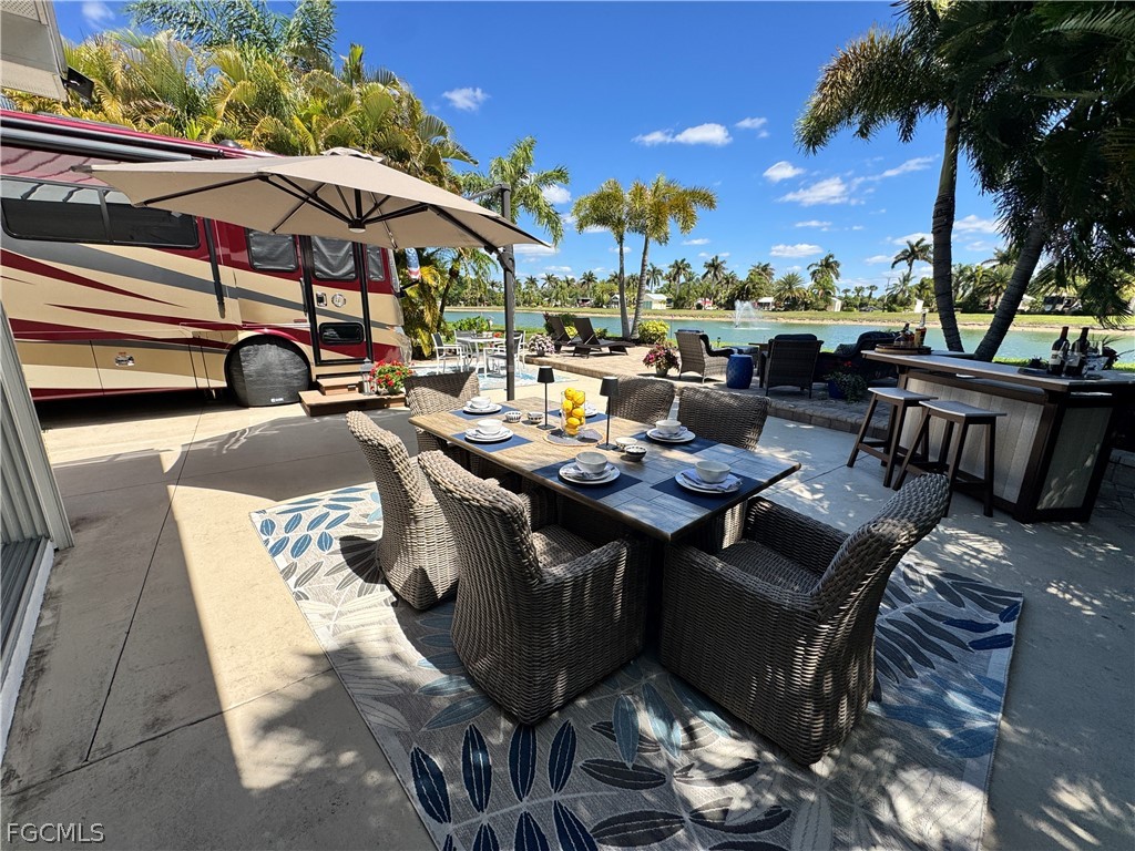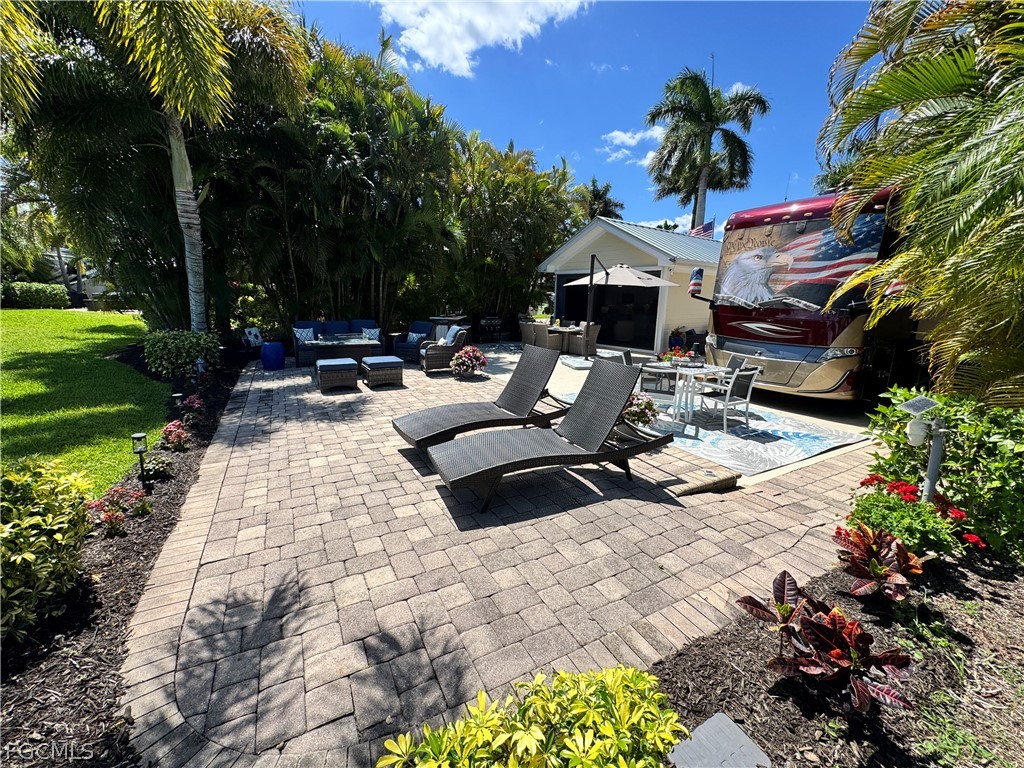 There’s something about Lot 253 that immediately feels like home. As you ease into this pull-in waterfront site, the view opens up to a stunning portrait of Grand Lake, where the gentle movement of the fountain creates a soothing soundtrack by day and a mesmerizing glow by night. It’s the kind of setting that invites you to pause, breathe, and stay a little longer than you planned. The coach house welcomes you with warmth and thoughtful design. Inside, a bright kitchenette and a movable entertaining island make hosting feel effortless, whether it’s a casual cocktail hour or a full meal with friends. Every detail has been curated with an eye for style, creating a space that feels both polished and inviting. Above, a charming loft accessed by a movable library ladder offers the perfect hideaway for guests or a clever place to tuck away seasonal items. The bathroom is equally impressive, featuring a beautiful glass entry shower and striking tile-work that adds just the right touch of luxury. A spacious vanity makes getting ready a pleasure, while the washer, dryer, and additional storage are seamlessly integrated for maximum convenience. Step outside, and the lifestyle truly unfolds. There’s room to create multiple spaces—perhaps a quiet corner for morning coffee and a good book, a sunny spot to soak up the Florida warmth, or an inviting area to gather with friends for unforgettable evenings. The remote controlled patio screen keeps the space comfortable year-round, allowing cool breezes to flow freely while keeping pests at bay, so you can enjoy every moment from sunrise to sunset. This property also comes with valuable extras, these items include a recent survey and engineered plans for a highly sought-after covered lanai extension, offering even more potential to enhance your outdoor living space. Most of the interior furniture and appliances will convey, making the transition into your new retreat seamless, with just a few personal exclusions. As an added bonus, the owner is open to seller financing. Life at RiverBend Motorcoach Resort is about more than just a beautiful property. It’s about the experience. Residents enjoy a private boat ramp with access to the Caloosahatchee River, perfect for days spent boating, fishing, or cruising into the sunset. Enjoy Bourbon and cigar nights by the Caloosahatchee River, a little mischief at tap room trivia, and just enough luck to bluff your way through Texas Hold’em. The resort-style pool, complete with a lively poolside bar and relaxing hot tubs, becomes a natural gathering place for friends and neighbors. For those who enjoy staying active, there are pickleball courts, bocce, shuffleboard, horseshoes, and a putting green, along with a fitness room and billiards. Unique touches like the R/C racetrack, hobby train, and R/C boating club add to the charm and character of this vibrant community. Bring your motorcoach, settle in, and start creating the kind of memories that only a place like this can offer.